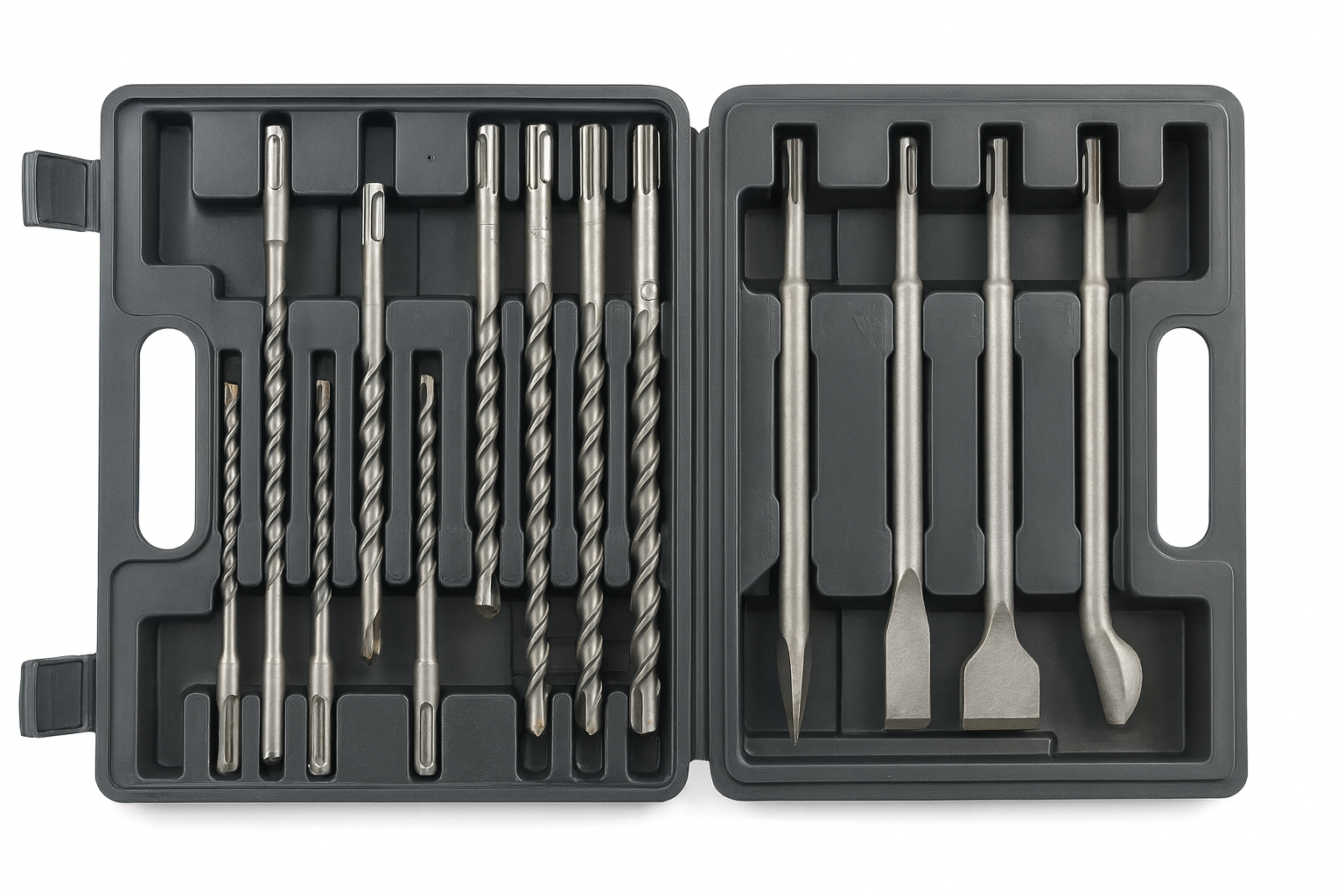 סט מקדחים ופטישונים איכותי הכולל 13 חלקים.