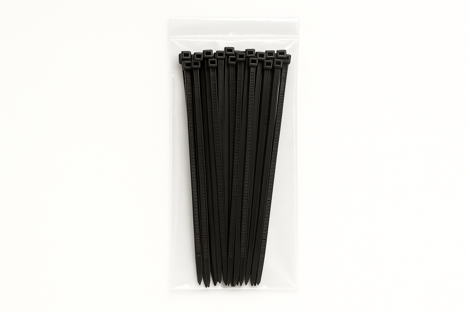 חבילת אזיקונים לבנים/שחורים מותאמים לקשירה,ארגון ואבטחה.