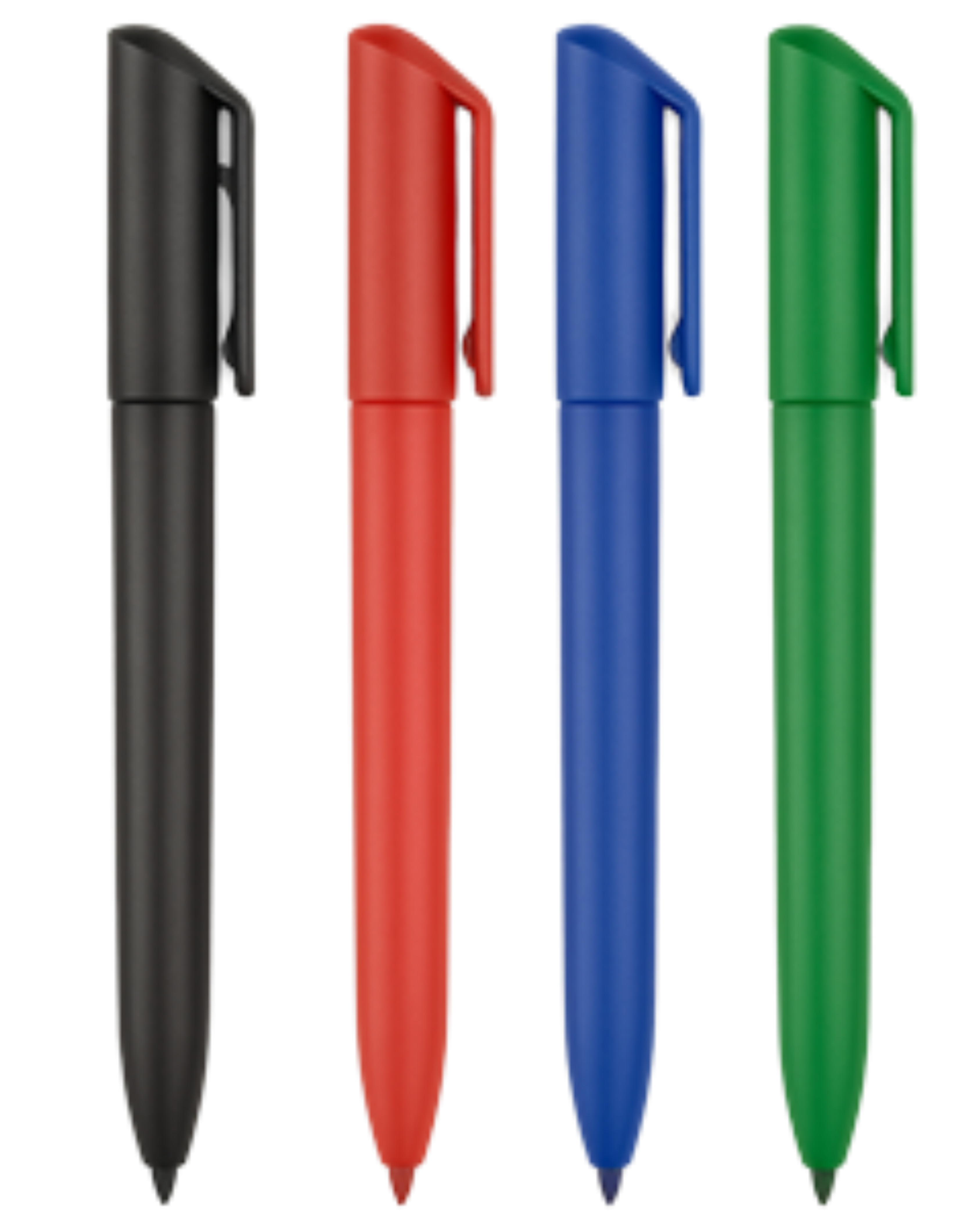 סט של ארבעה טושי סימון המיועדים לסימון והדגשה על משטח העבודה.